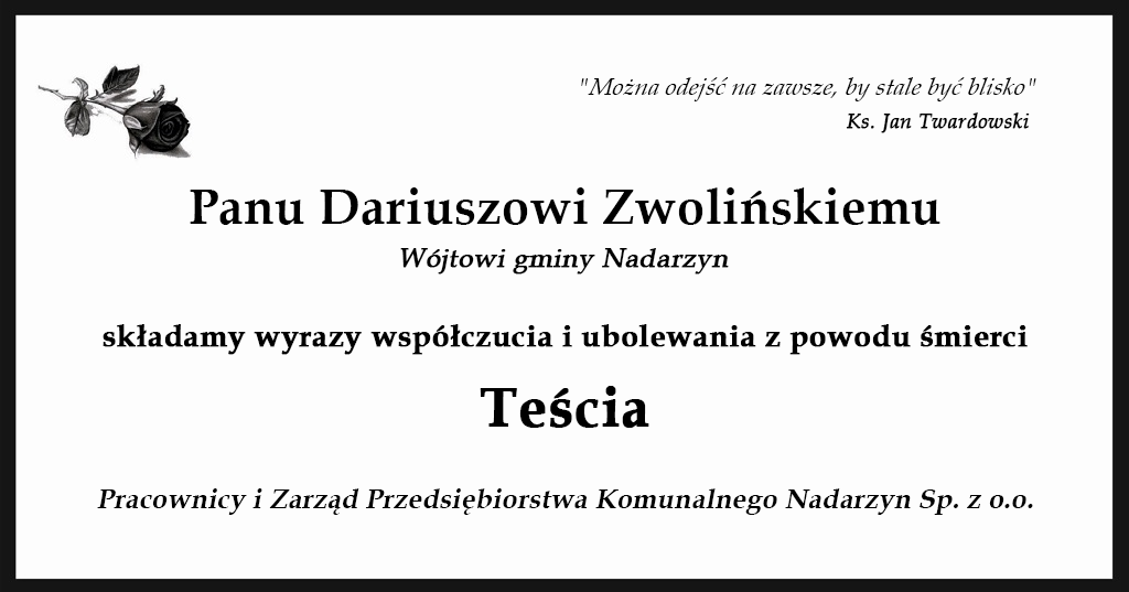 Kondolencje dla Pana Dariusza Zwolińskiego